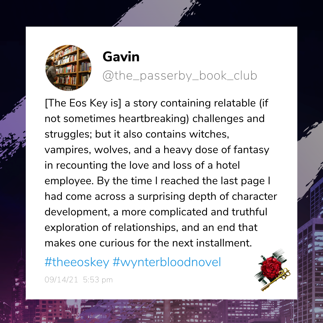 Eric Wynter is a vampire Ward sworn to protect the supernatural creatures of Ash City. After centuries of heartache and loneliness, he is finally ready to end his existence.